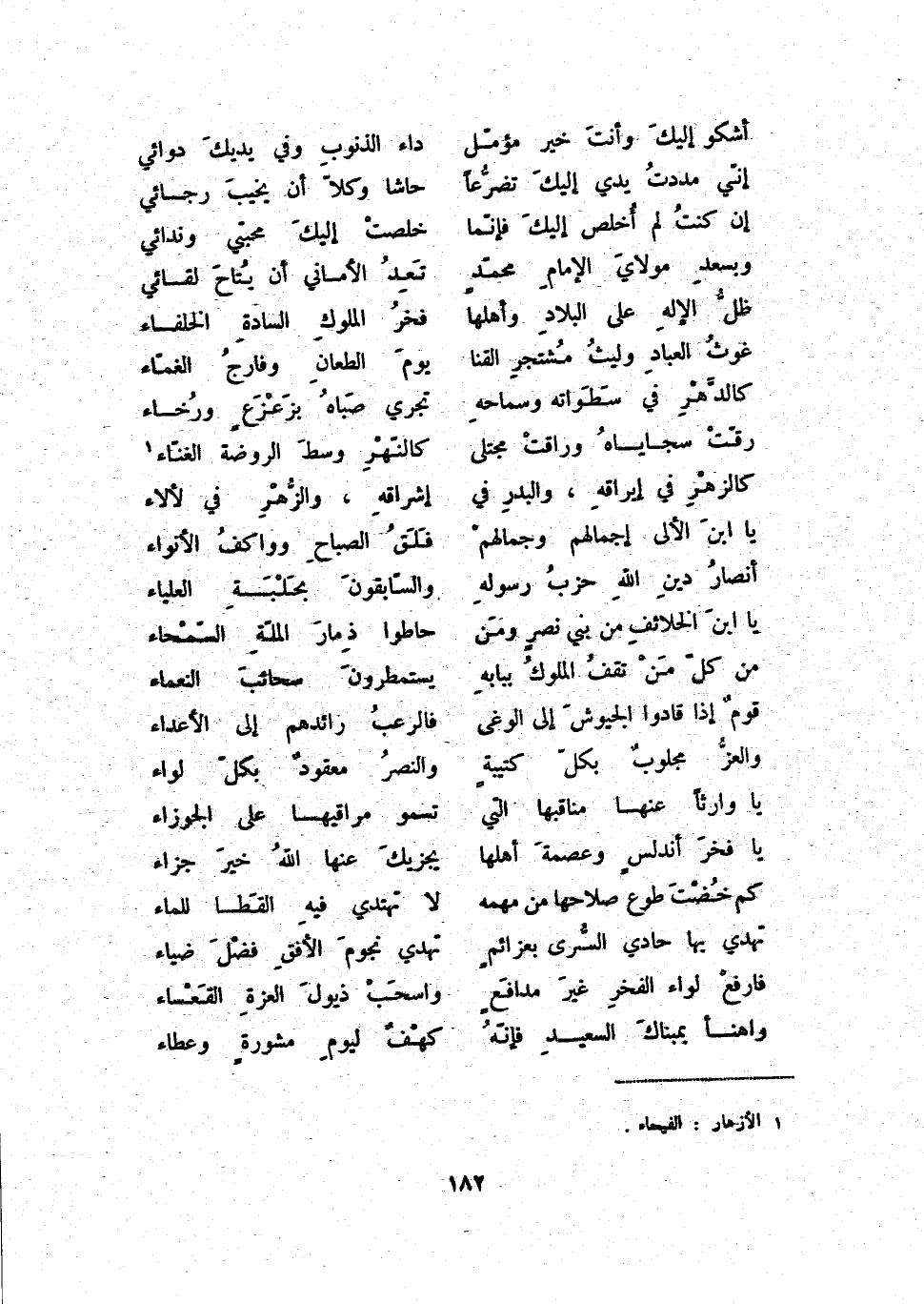 يا ابن الخلائف من بني نصرٍ ومن ... حاطوا ذمار الملّة السّمحاء