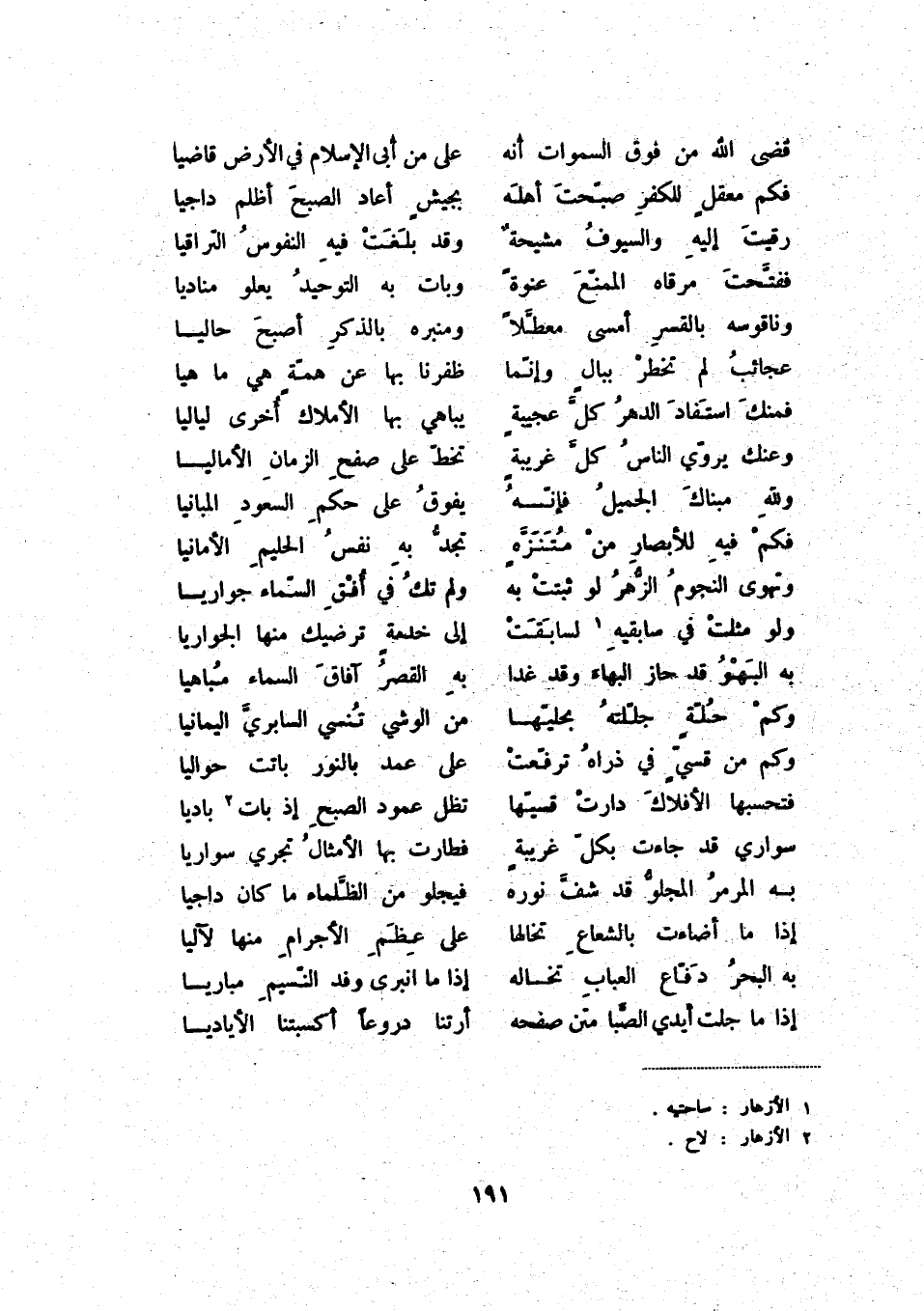 ففتّحت مرقاه الممنّع عنوة ... وبات به التوحيد يعلو مناديا