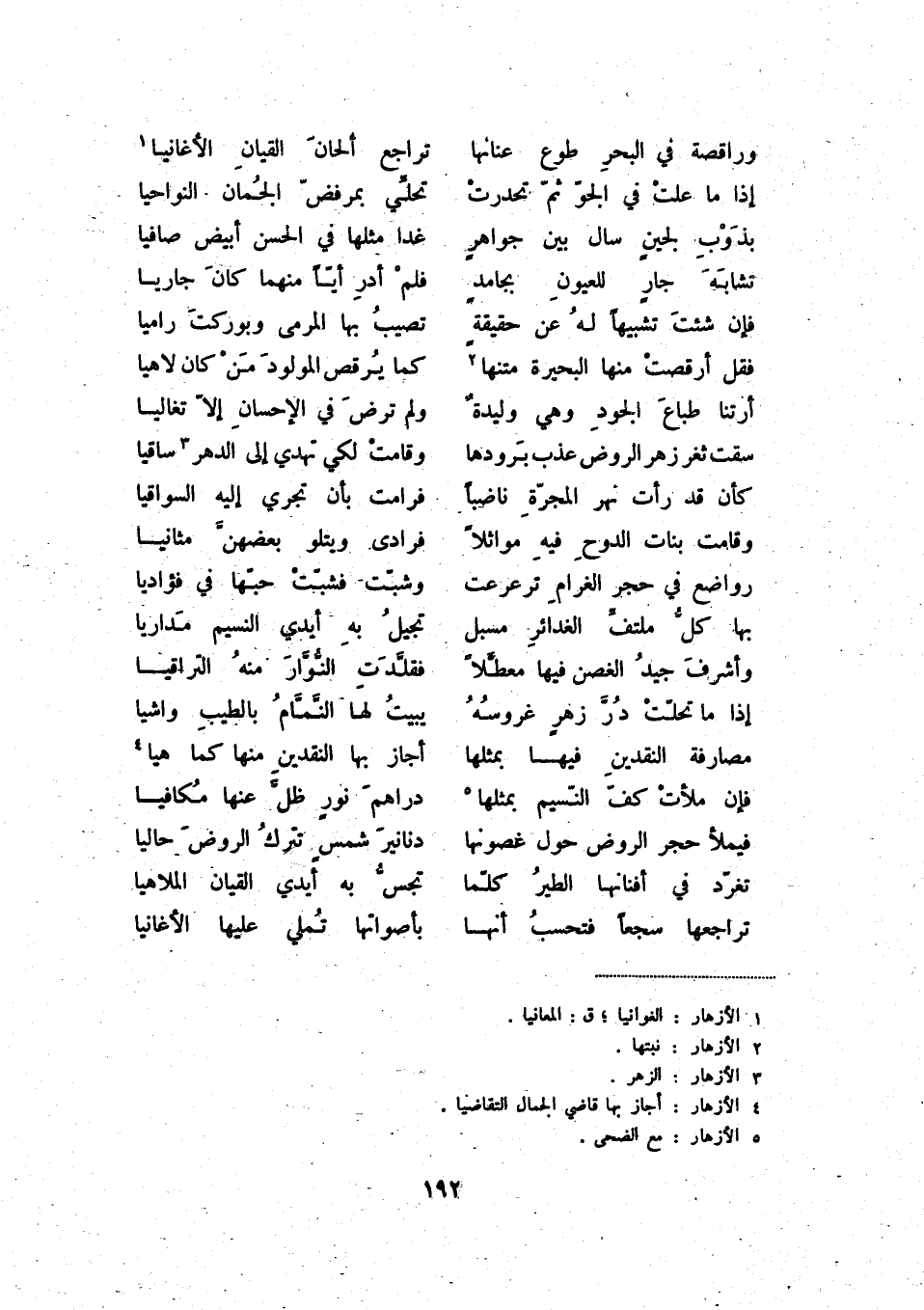 وراقصة في البحر طوع عنانها ... تراجع ألحان القيان الأغانيا (1)