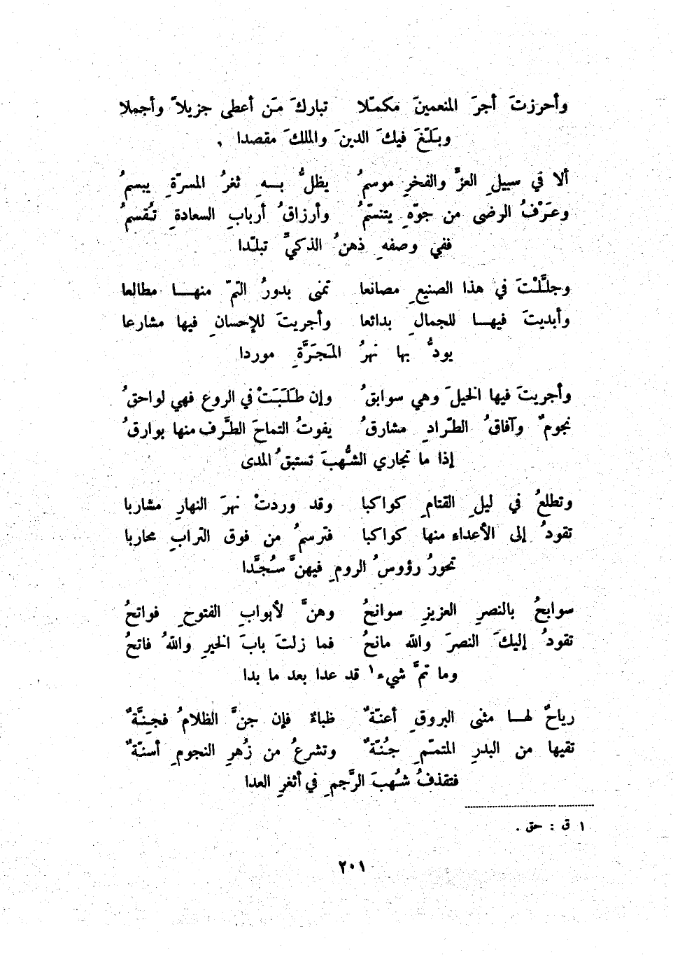 تقود إليك النصر والله مانح ... فما زلت باب الخير والله فاتح وما تمّ شيء (1) قد عدا بعد ما بدا ...