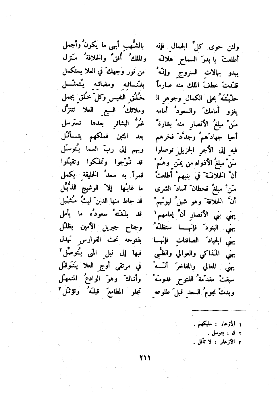 يهني بني الأنصار أنّ إمامهم (1) ... قد بلغته سعوده ما يأمل