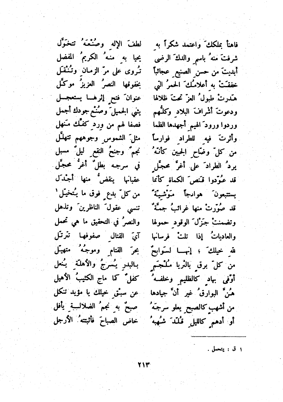 فاهنأ بملكك واعتمد شكراً به ... لطف الإله وصنعه تتخوّل