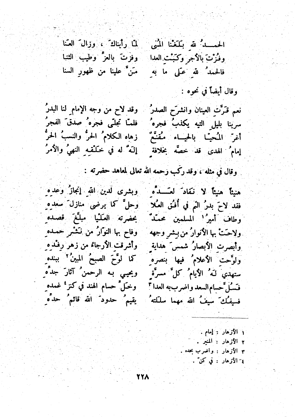فالحمد لله على ما به ... منّ علينا من ظهور السنا وقال أيضاً في نحوه: