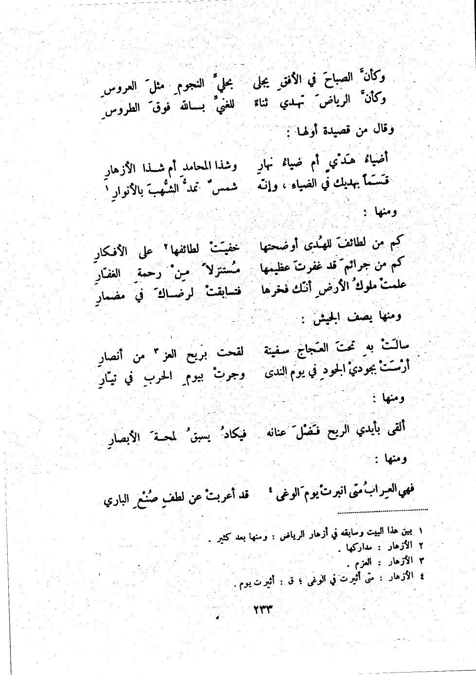قسماً بهديك في الضياء، وإنّه ... شمس تمدّ الشهب بالأنوار (1) ومنها: