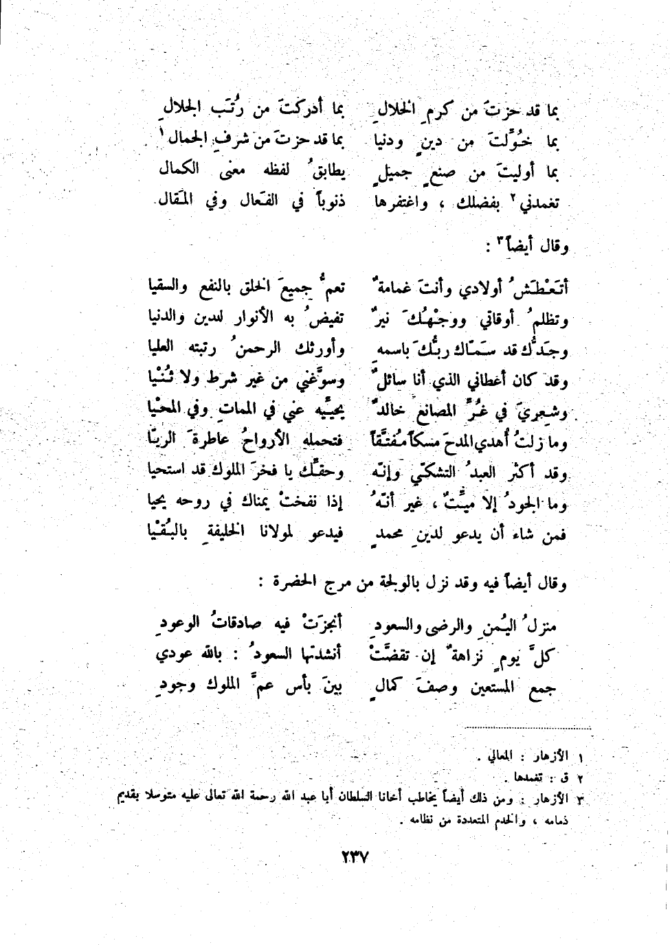 فمن شاء أن يدعو لدين محمد ... فيدعو لمولانا الخليفة بالبقيا وقال أيضاً فيه وقد نزل بالولجة من مرج الحضرة: