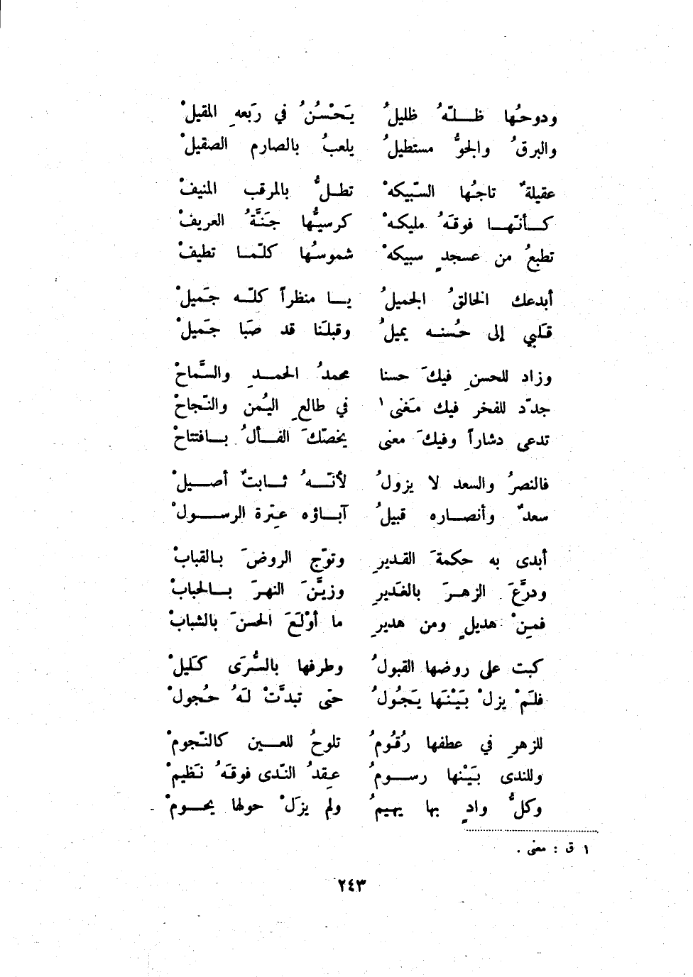 ودوحها ظلّه ظليل ... يحسن في ربعه المقيل