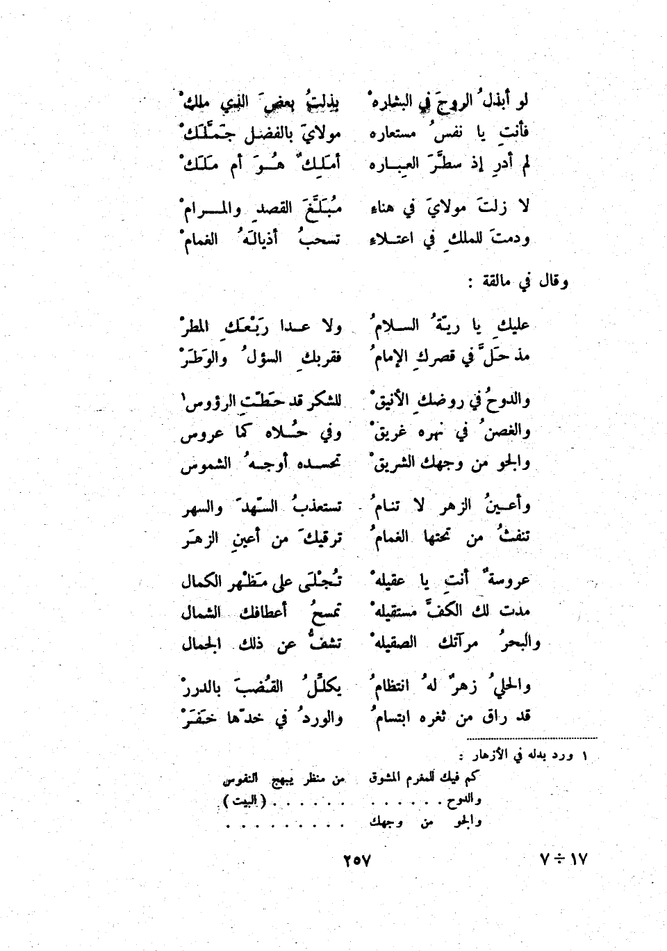 لا زلت مولاي في هناء ... مبلّغ القصد والمرام