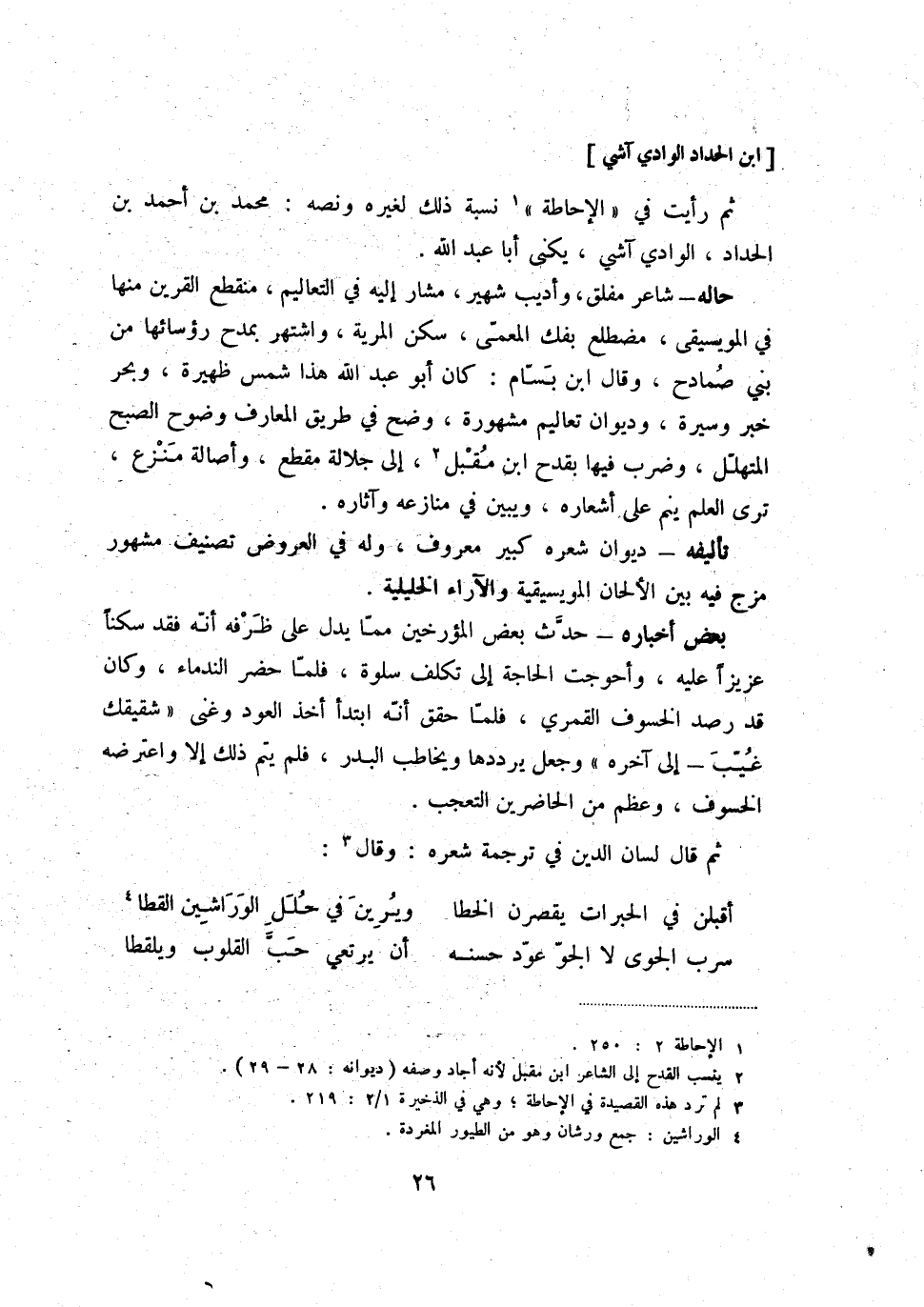 ثم رأيت في " الإحاطة " (1) نسبة ذلك لغيره ونصه: محمد بن أحمد بن الحداد، الوادي آشي، يكنى أبا عبد الله.