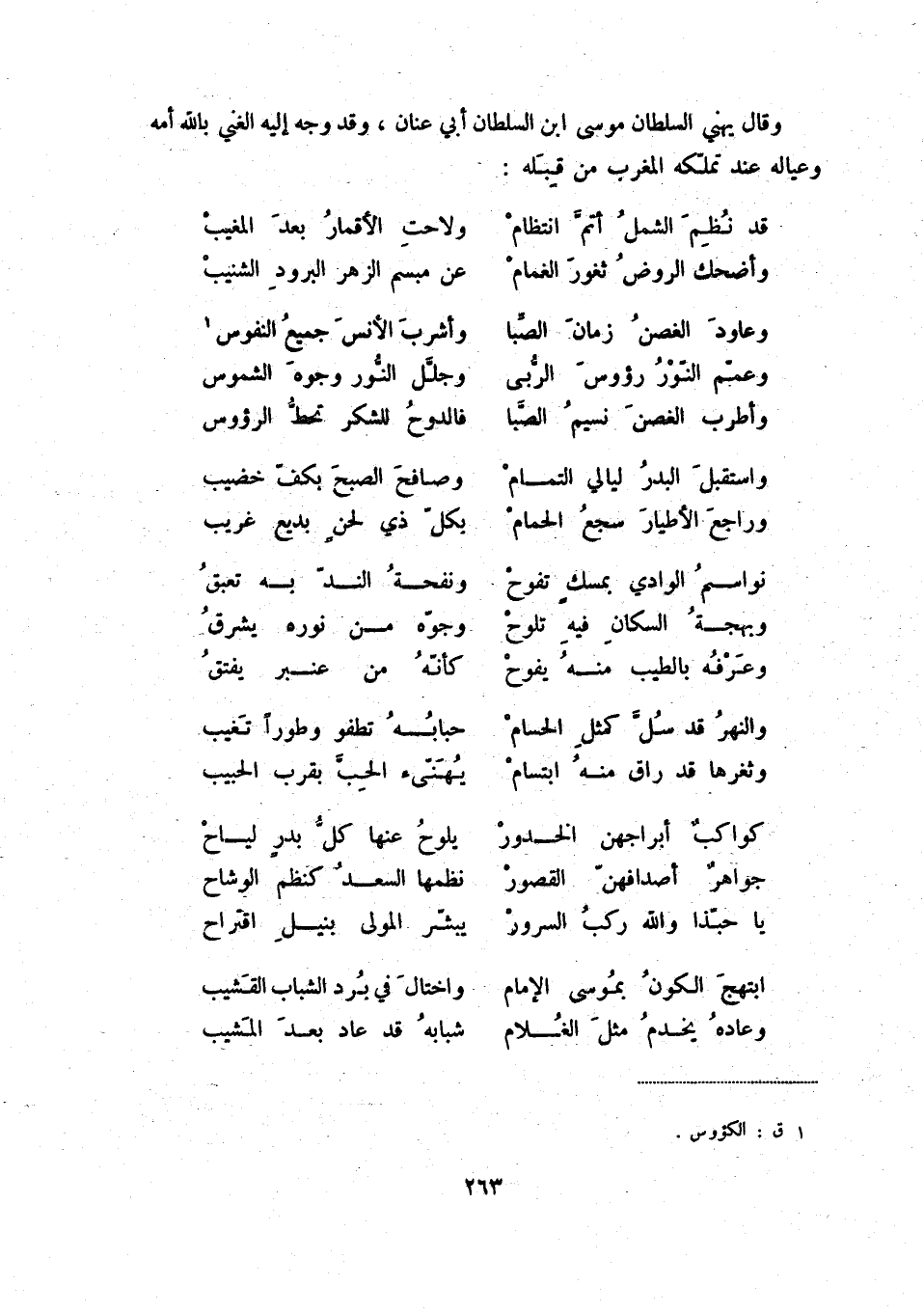 وعاود الغصن زمان الصّبا ... وأشرب الأنس جميع النفوس (1)