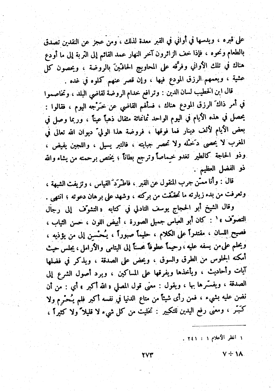 قال: وأنا ممّن جرب المنقول عن القبر، فاطّرد القياس، وتزيفت الشبهة، وتعرفت من بدء زيارته ما تحقّقت من بركته، وشهد على برهان دعوته؛ انتهى.