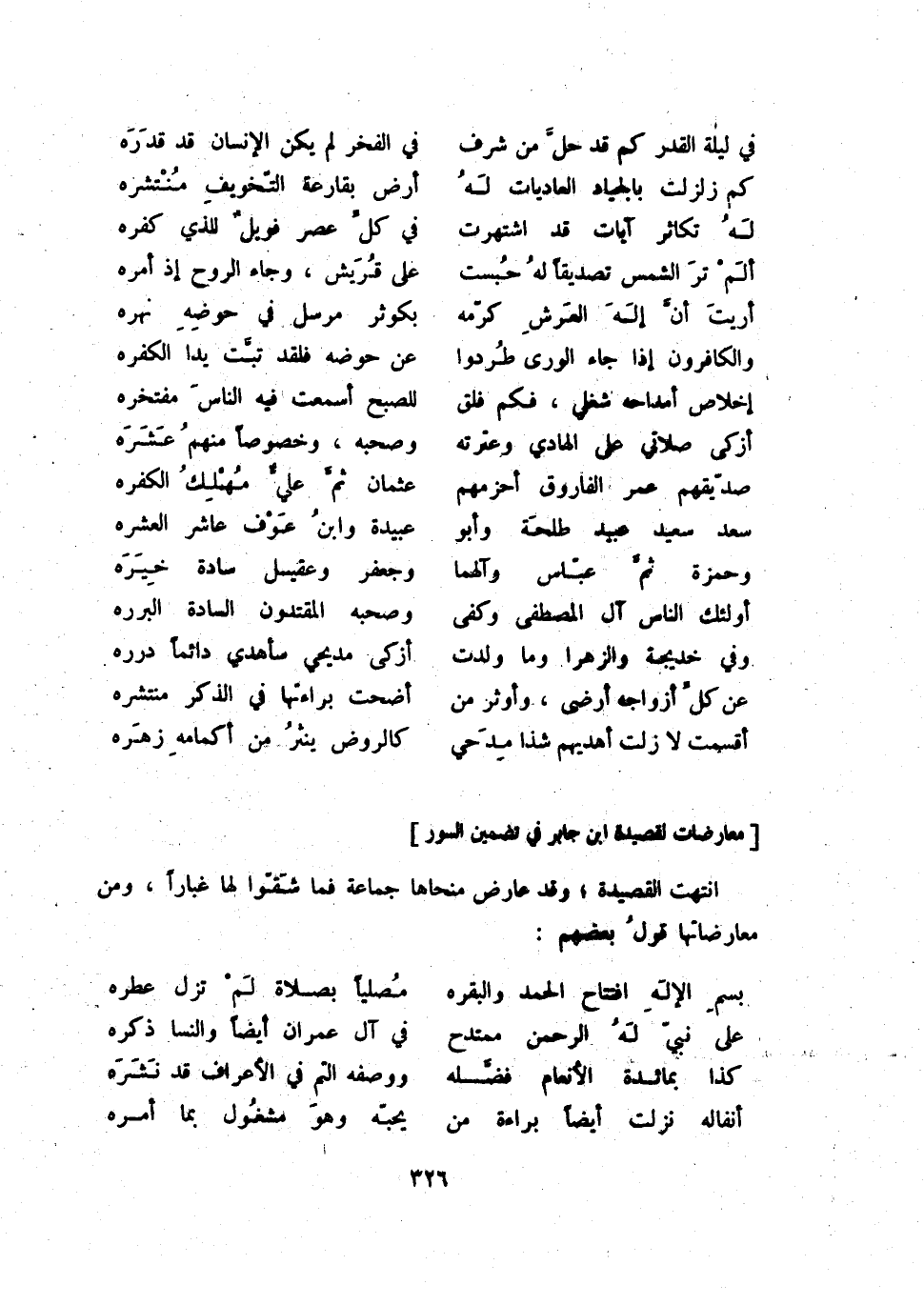 له تكاثر آيات قد اشتهرت ... في كلّ عصر فويل للذي كفره