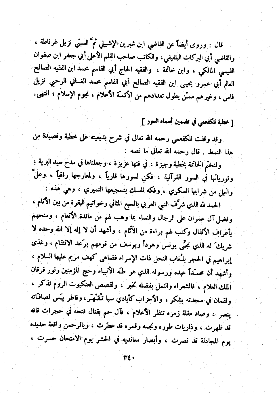 [خطبة للكفعمي في تضمين أسماء السور]