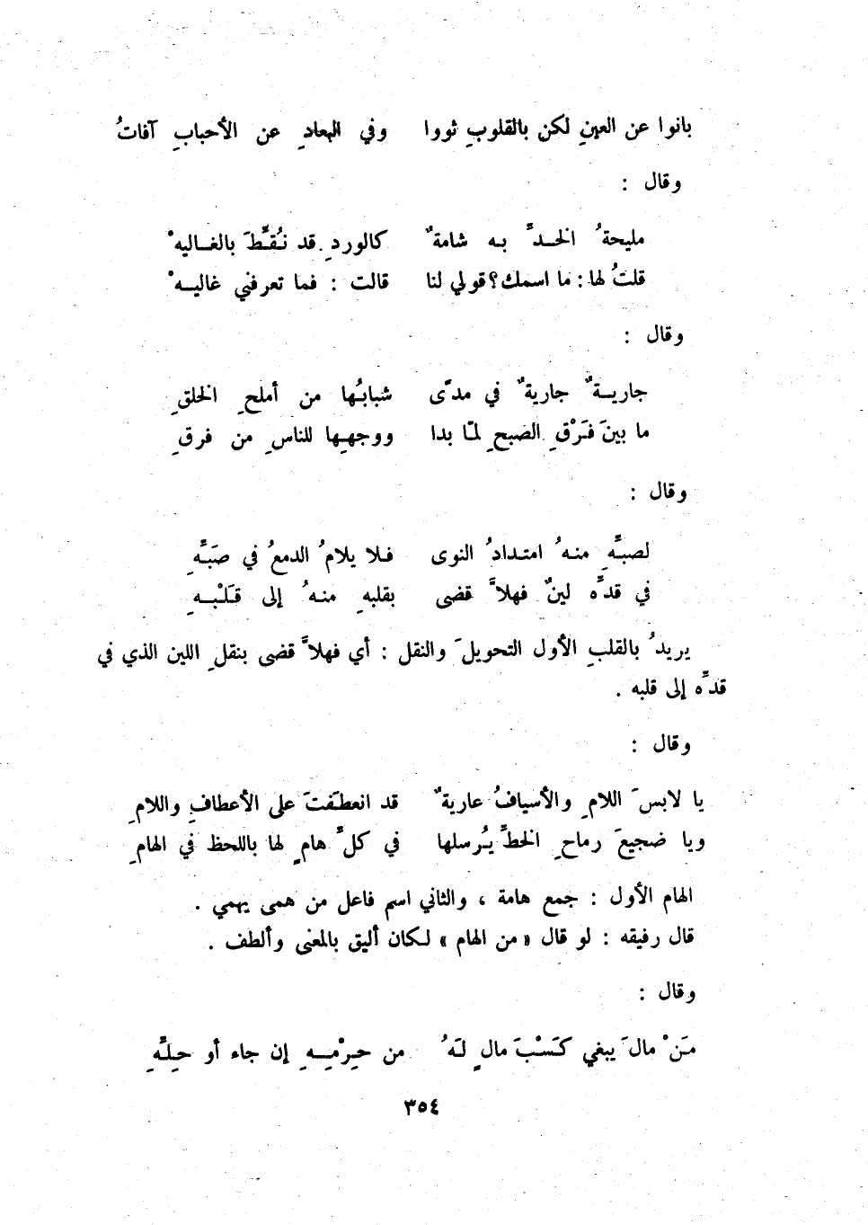 في قدّه لين فهلاّ قضى ... بقلبه منه إلى قلبه يريد بالقلب الأول التحويل والنقل: أي فهلاّ قضى بنقل اللين الذي في قدّه إلى قلبه.