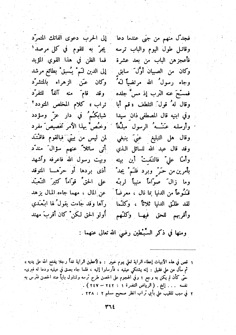 وأقربهم للحق فيها وكلّهم ... أول الحق لكن كان أقرب مهتد ومنها في ذكر السّبطين رضي الله تعالى عنهما: