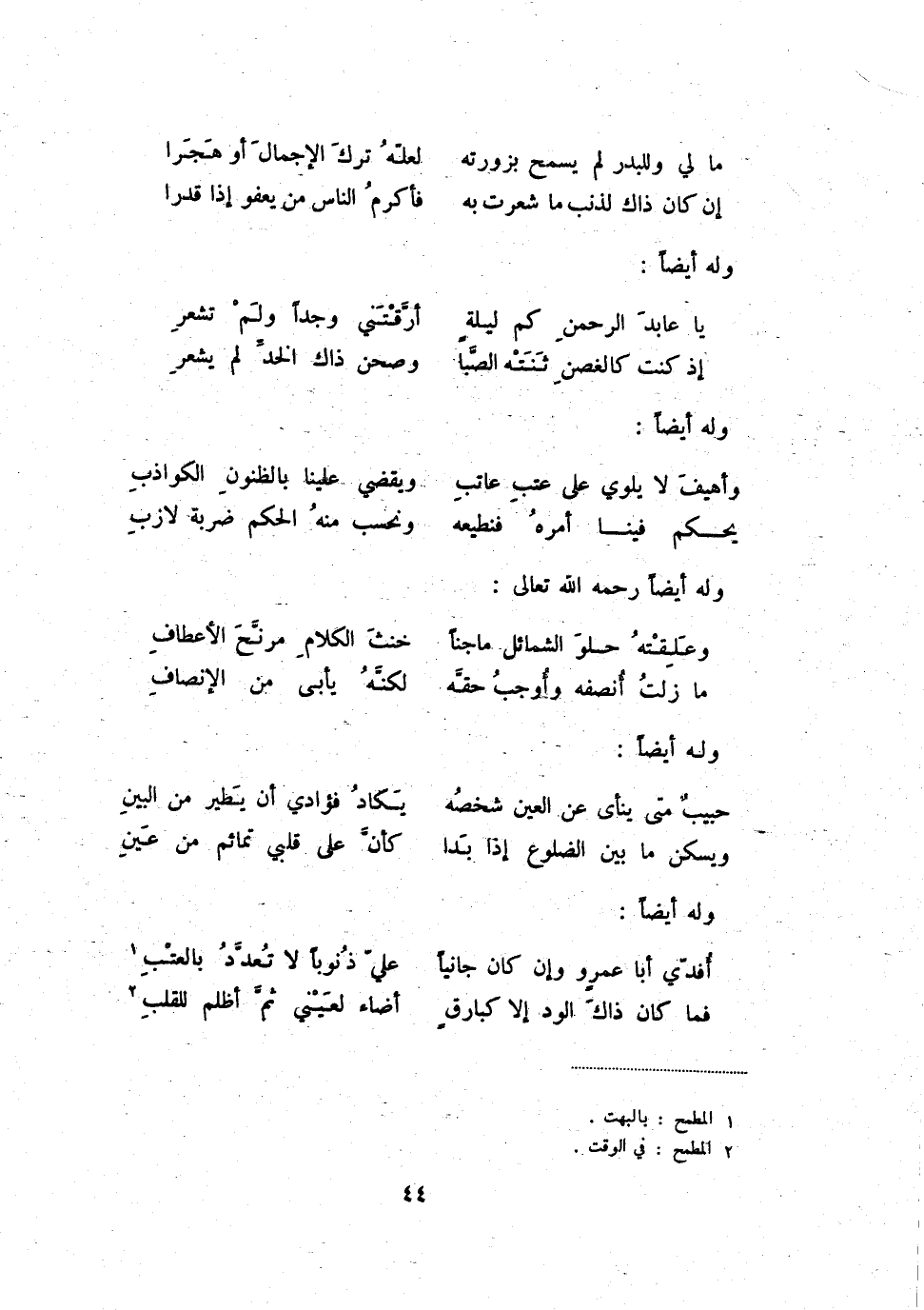 إن كان ذاك لذنب ما شعرت به ... فأكرم الناس من يعفو إذا قدرا وله أيضاً: