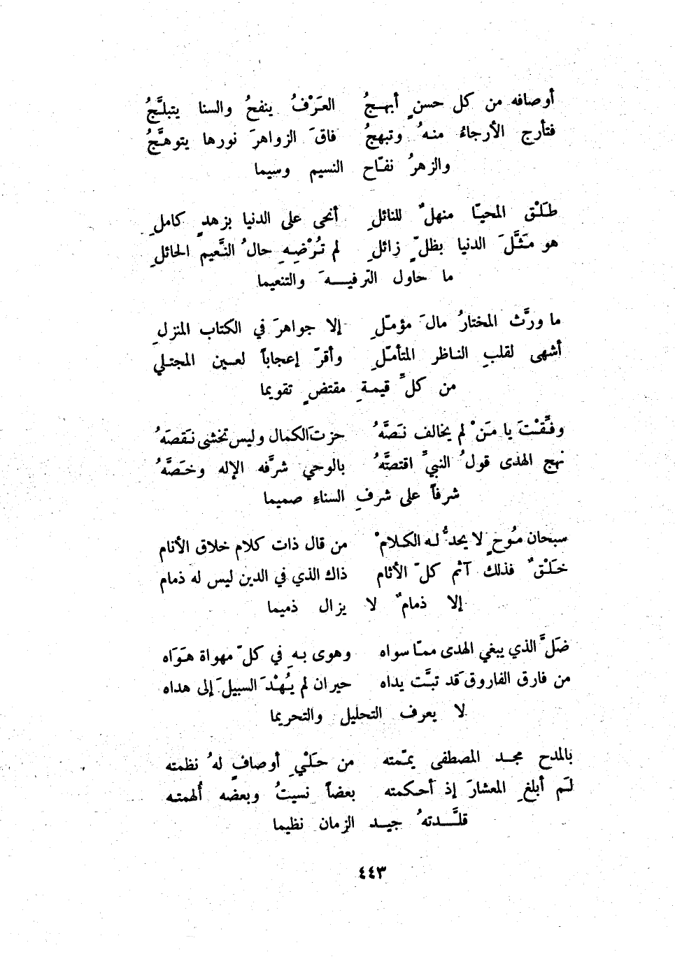 نهج الهدى قول النبيّ اقتصّه ... بالوحي شرّفه الإله وخصّه شرفاً على شرف السناء صميما ...