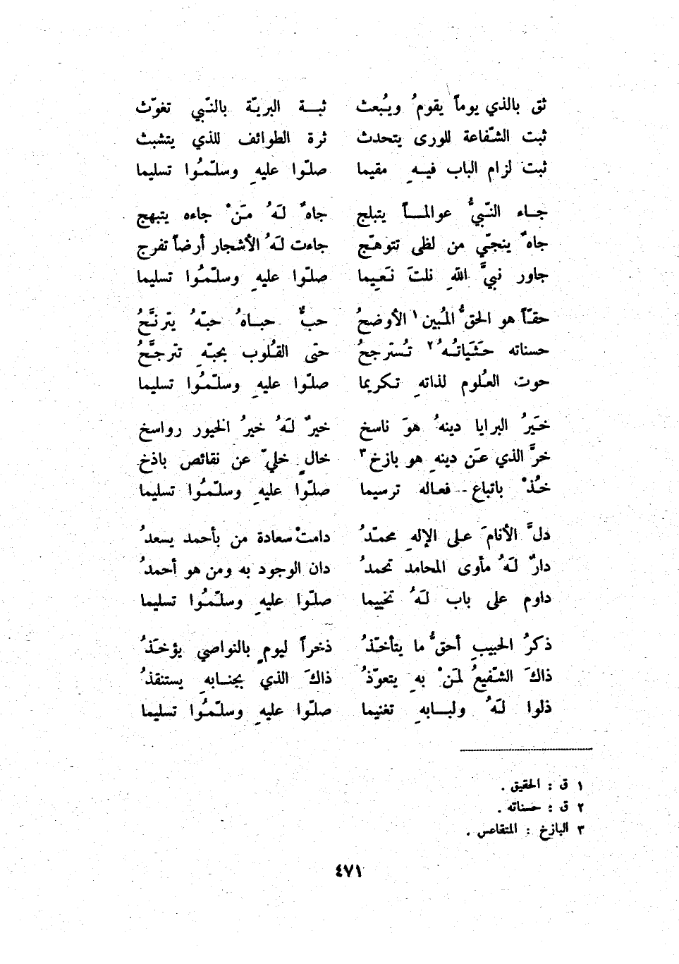 جاور نبيّ الله نللت نعيما ... صلّوا عليه وسلّموا تسليما