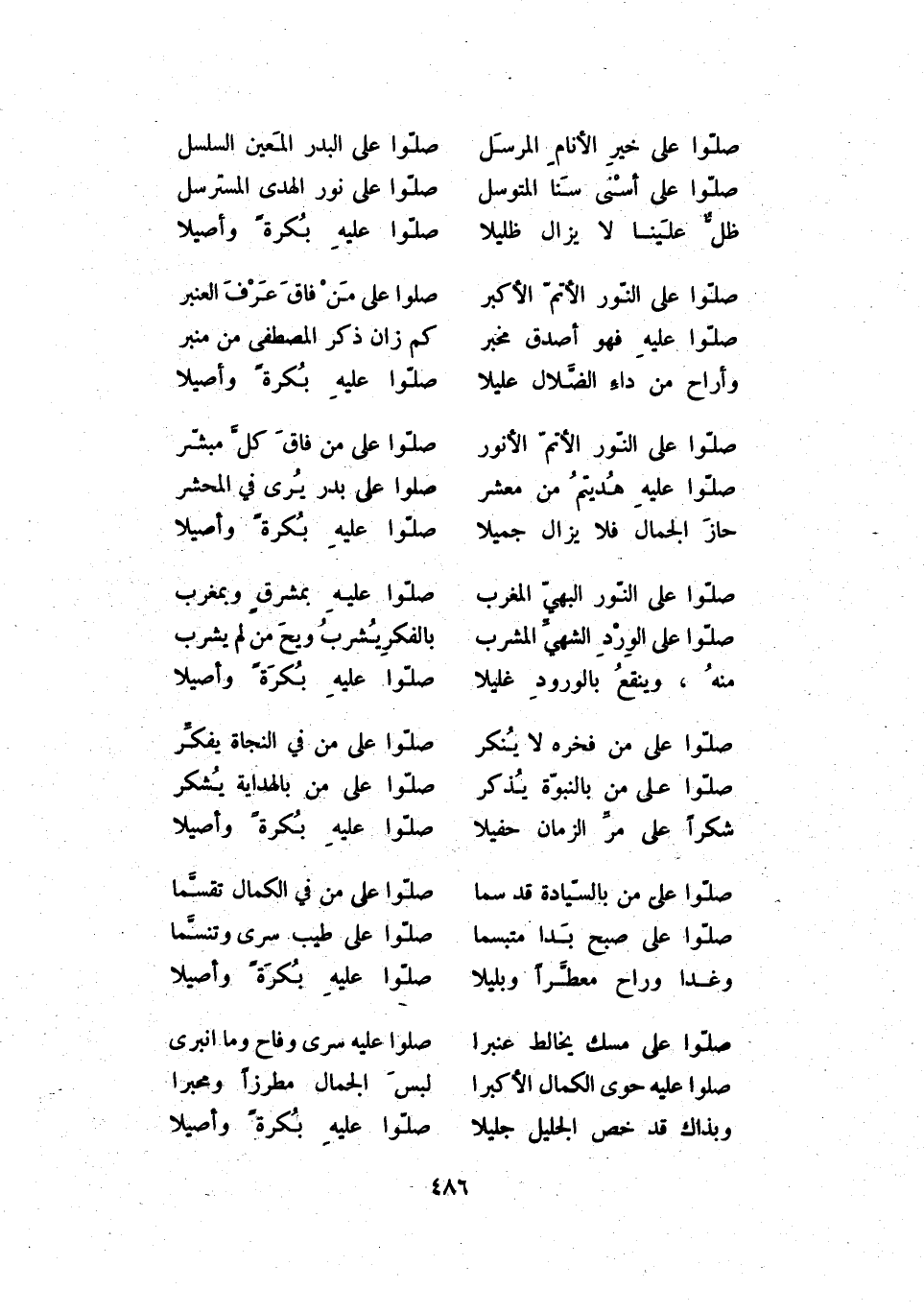 صلّوا على النّور البهيّ المغرب ... صلّوا عليه بمشرق وبمغرب