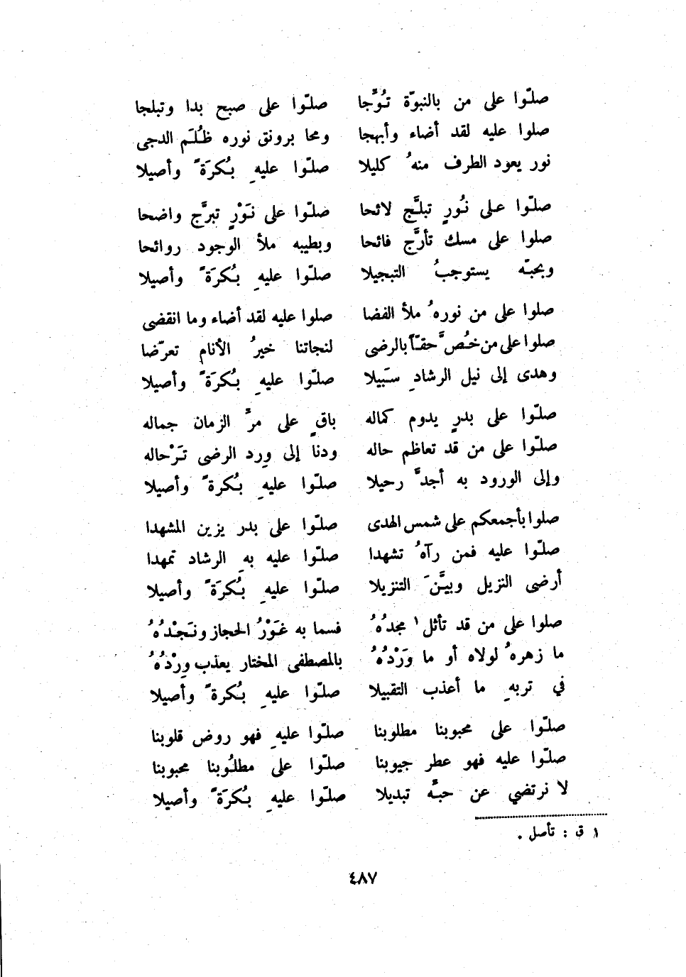 نور يعود الطرف منه كليلا ... صلّوا عليه بكرةً وأصيلا