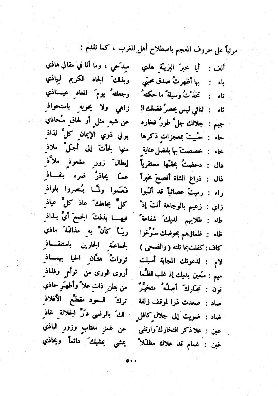 مرتباً على حروف المعجم باصطلاح أهل المغرب، كما تقدم: