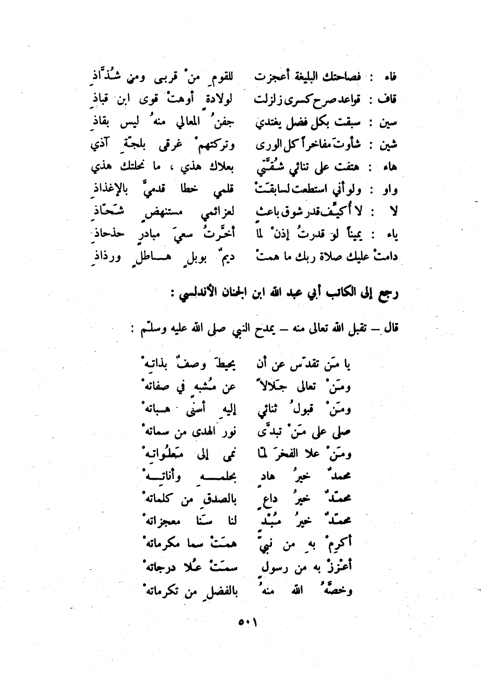 قال - تقبل الله تعالى منه - يمدح النبي صلى الله عليه وسلّم:
