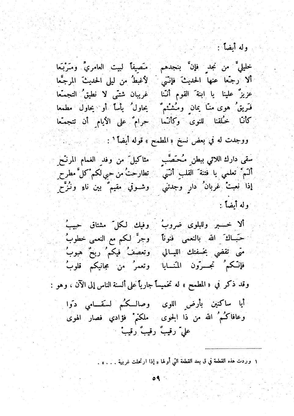 كأنّا خلقنا للنوى وكأنّما ... حرام على الأيام أن تتجمّعا ووجدت له في بعض نسخ " المطمح " قوله أيضاً (1) :
