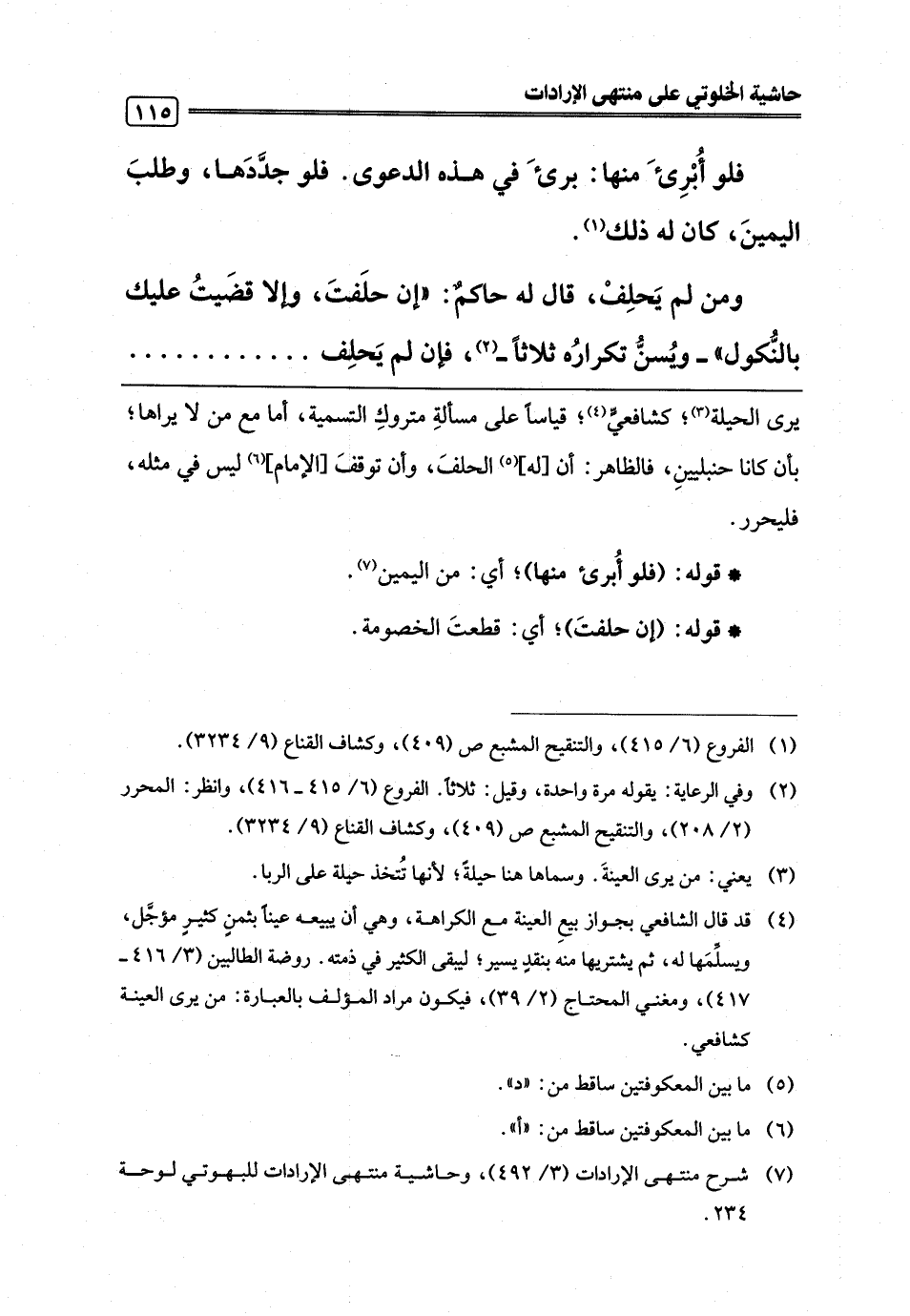 (¬7) شرح منتهى الإرادات (3/ 492)، وحاشية منتهى الإرادات للبهوتي لوحة 234.