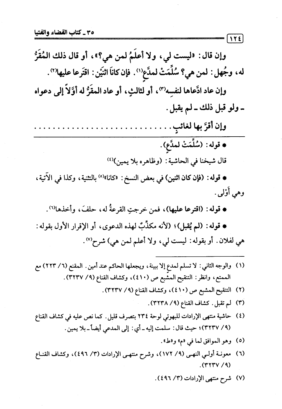 (¬4) حاشية منتهى الإرادات للبهوتي لوحة 234 بتصرف قليل. كما نص عليه في كشاف القناع (9/ 3237)؛ حيث قال: سلمت إليه -أي: إلى المدعي أيضًا- بلا يمين.