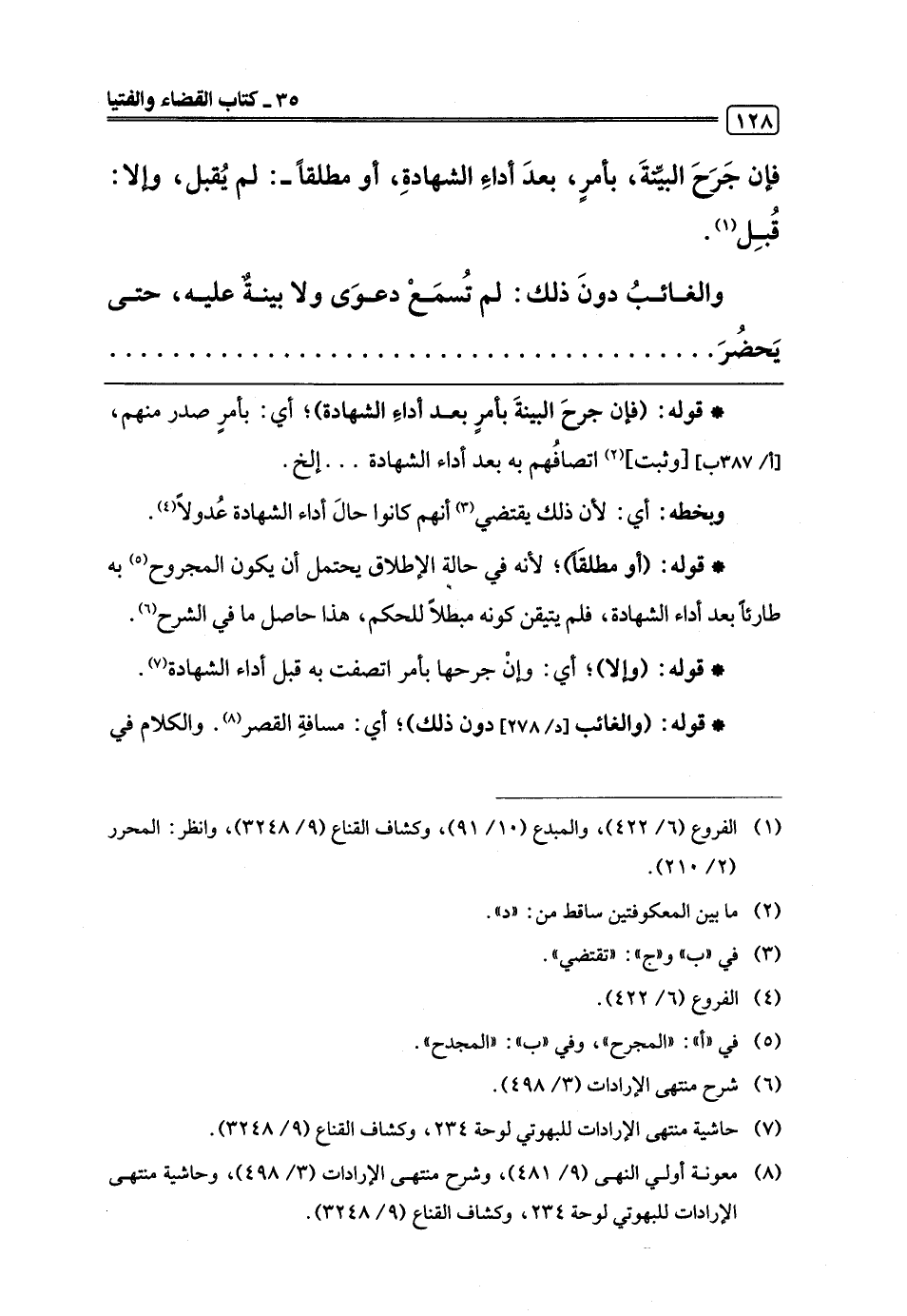 (¬7) حاشية منتهى الإرادات للبهوتي لوحة 234، وكشاف القناع (9/ 3248).
