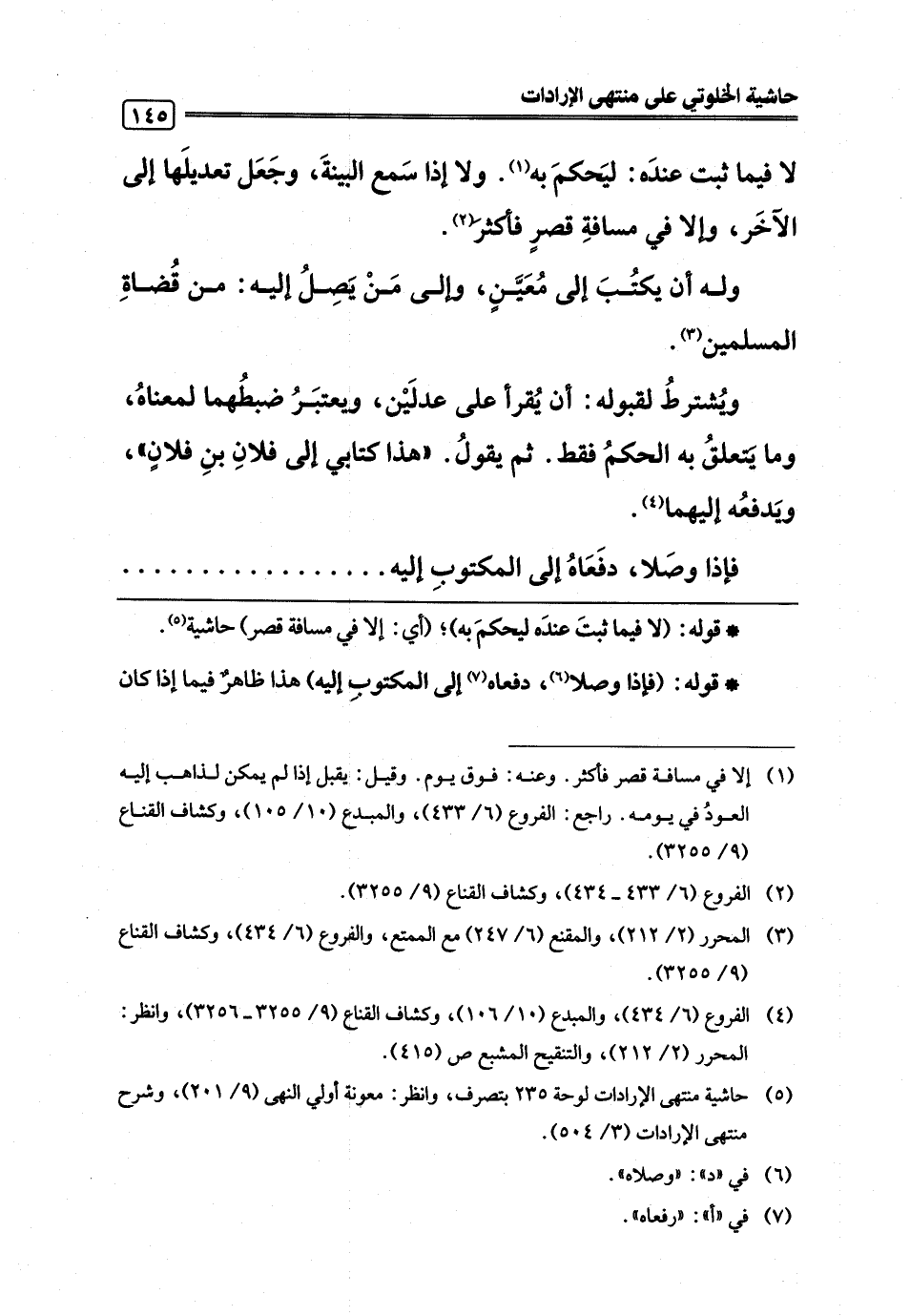 (¬5) حاشية منتهى الإرادات لوحة 235 بتصرف، وانظر: معونة أولي النهى (9/ 201)، وشرح منتهى الإرادات (3/ 504).