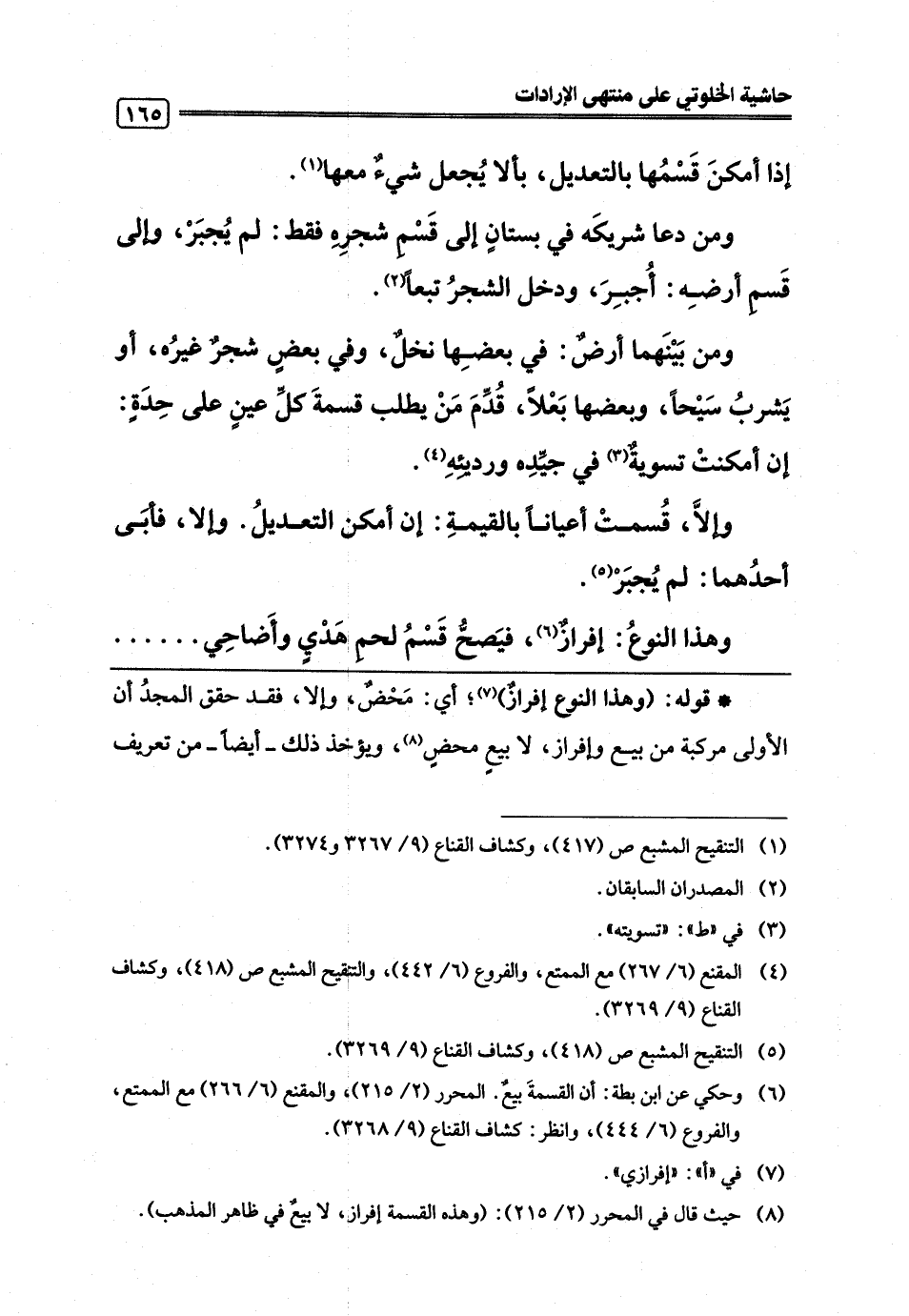 * قوله: (وهدا النوع إفرازٌ) (¬7)؛ أي: مَحْضٌ، وإلا، فقد حقق المجدُ أن الأولى مركبة من بيع وإفراز، لا بيعٍ محضٍ (¬8)، ويؤخذ ذلك -أيضًا- من تعريف