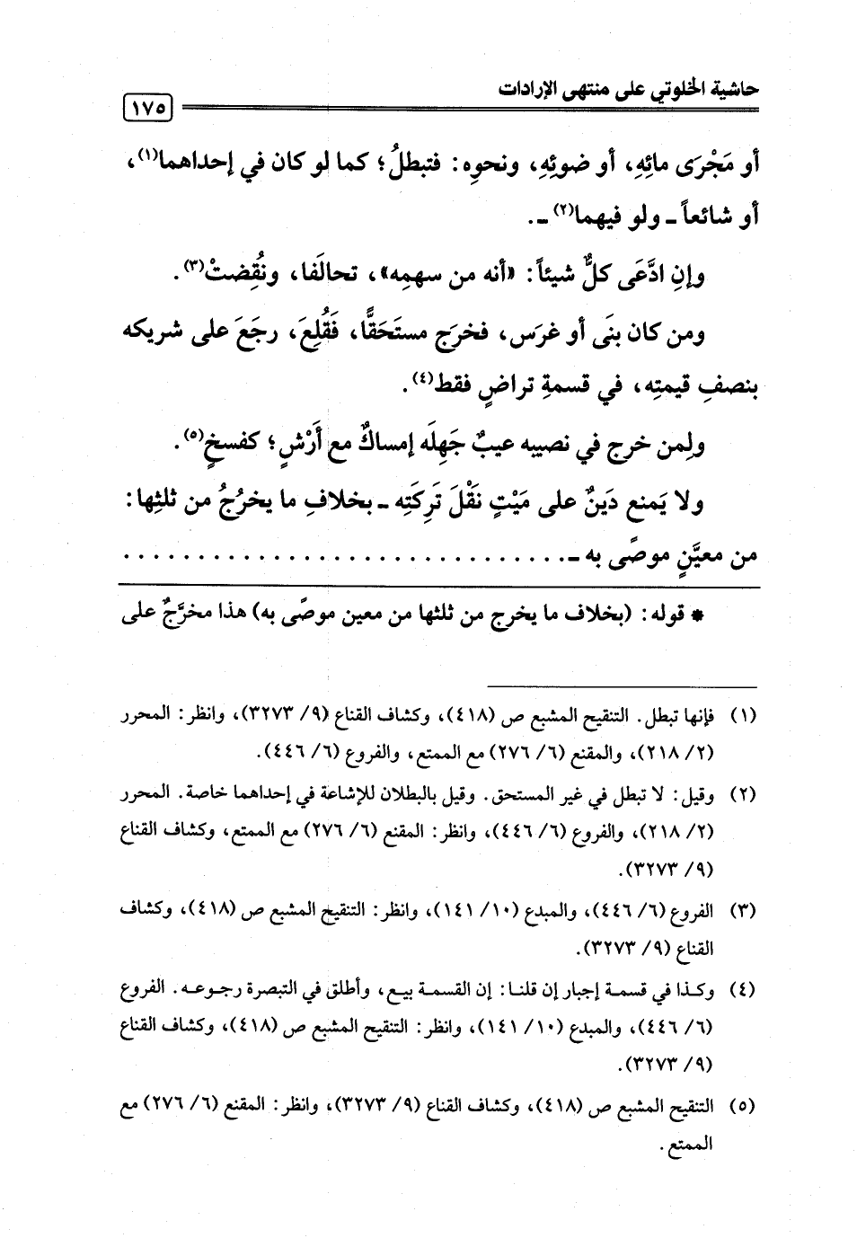 (¬5) التنقيح المشبع ص (418)، وكشاف القناع (9/ 3273)، وانظر: المقنع (6/ 276) مع الممتع.