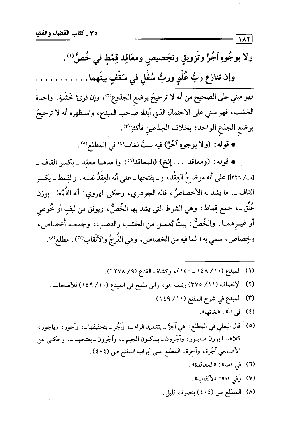 فهو مبني على الصحيح من أنه لا ترجيحَ بوضعِ الجذوع (¬2)، وإن قرئ خَشَبةٍ: واحدة الخشب، فهو مبني على الاحتمال الذي أبداه صاحب المبدع، واستظهره أنه لا ترجيحَ بوضعِ الجذعِ الواحد؛ بخلاف الجذعينِ فأكثرَ (¬3).