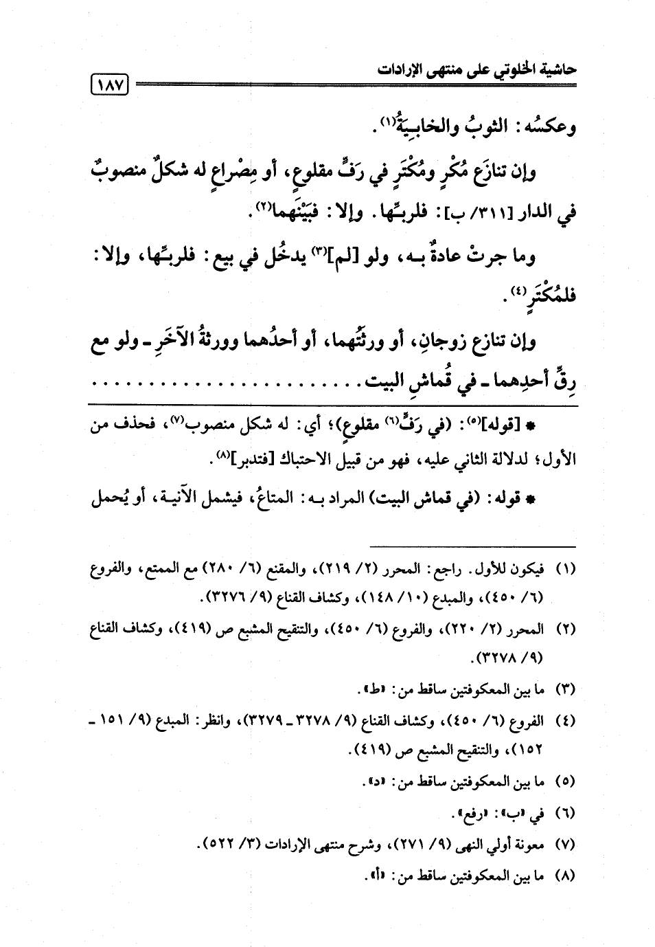 (¬7) معونة أولي النهى (9/ 271)، وشرح منتهى الإرادات (3/ 522).