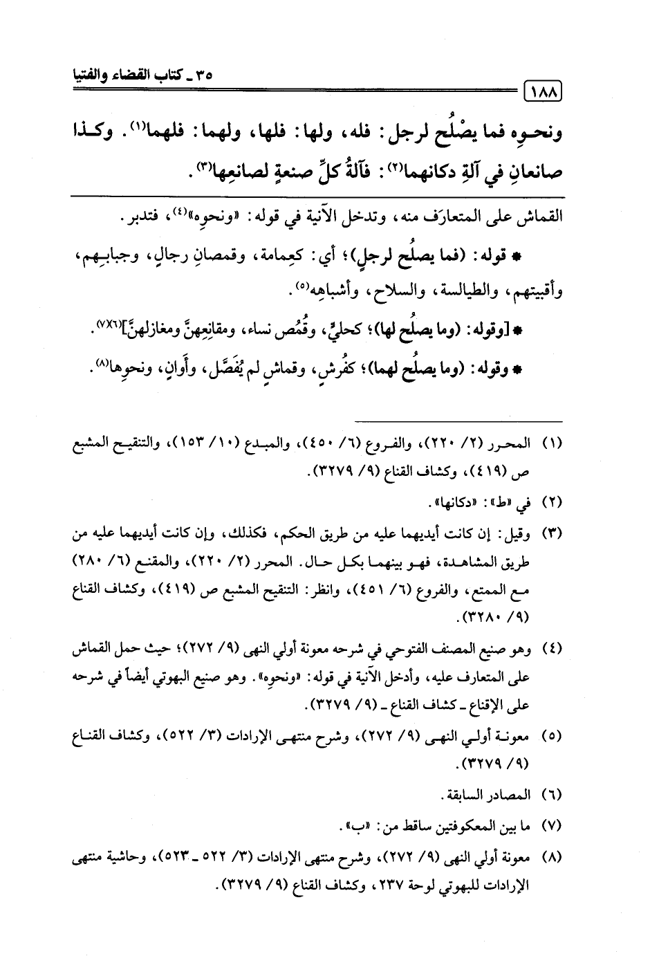 (¬8) معونة أولي النهى (9/ 272)، وشرح منتهى الإرادات (3/ 522 - 523)، وحاشية منتهى الإرادات للبهوتي لوحة 237، وكشاف القناع (9/ 3279).