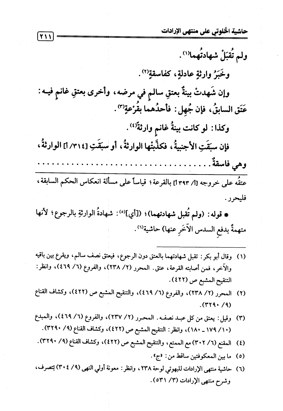 (¬6) حاشية منتهى الإرادات للبهوتي لوحة 238، وانظر: معونة أولي النهى (9/ 304) بتصرف، وشرح منتهى الإرادات (3/ 531).