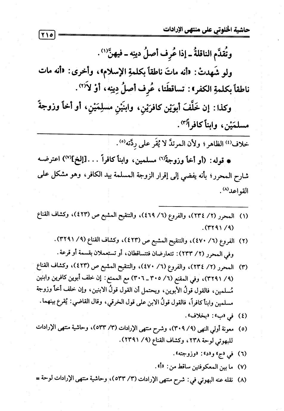 (¬5) معونة أولي النهى (9/ 309)، وشرح منتهى الإرادات (3/ 533)، وحاشية منتهى الإرادات للبهوتي لوحة 238، وكشاف القناع (9/ 2391).