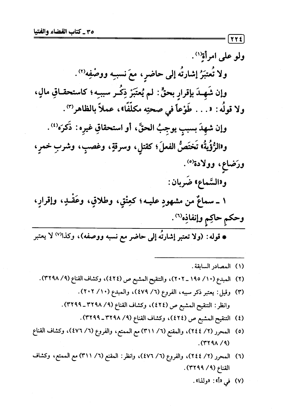 1 - سماعٌ من مشهودٍ عليه؛ كعِتْقٍ، وطلاقٍ، وعَقْدٍ، وإقرارٍ، وحكمِ حاكِمٍ وإنفاذِه (¬6).