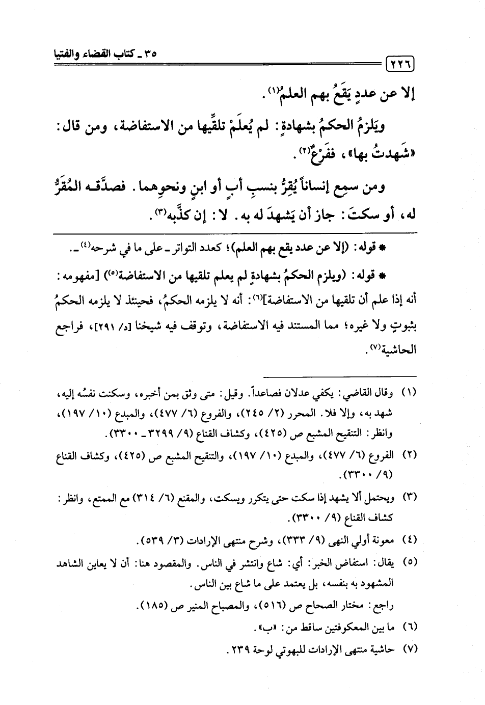 * قوله: (ويلزم الحكمُ بشهادةٍ لم يعلم تلقيها من الاستفاضة) (¬5) [مفهومه: أنه إذا علم أن تلقيها من الاستفاضة] (¬6): أنه لا يلزمه الحكمُ، فحينئذ لا يلزمه الحكمُ بثبوتٍ ولا غيره؛ مما المستند فيه الاستفاضة، وتوقف فيه شيخنا، فراجع الحاشية (¬7).