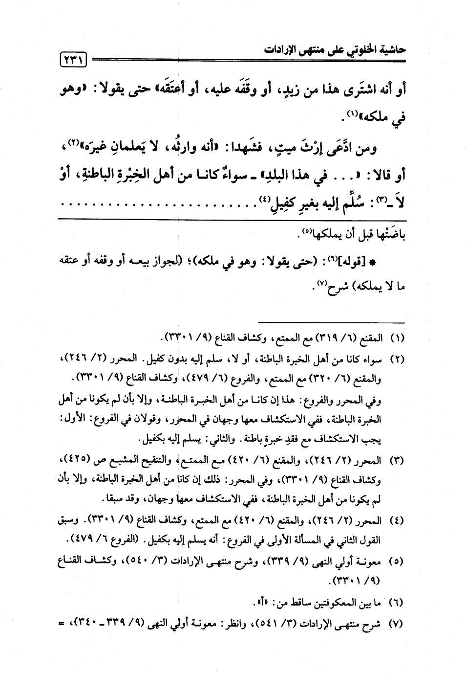 (¬7) شرح منتهى الإرادات (3/ 541)، وانظر: معونة أولي النهى (9/ 339 - 340)، =