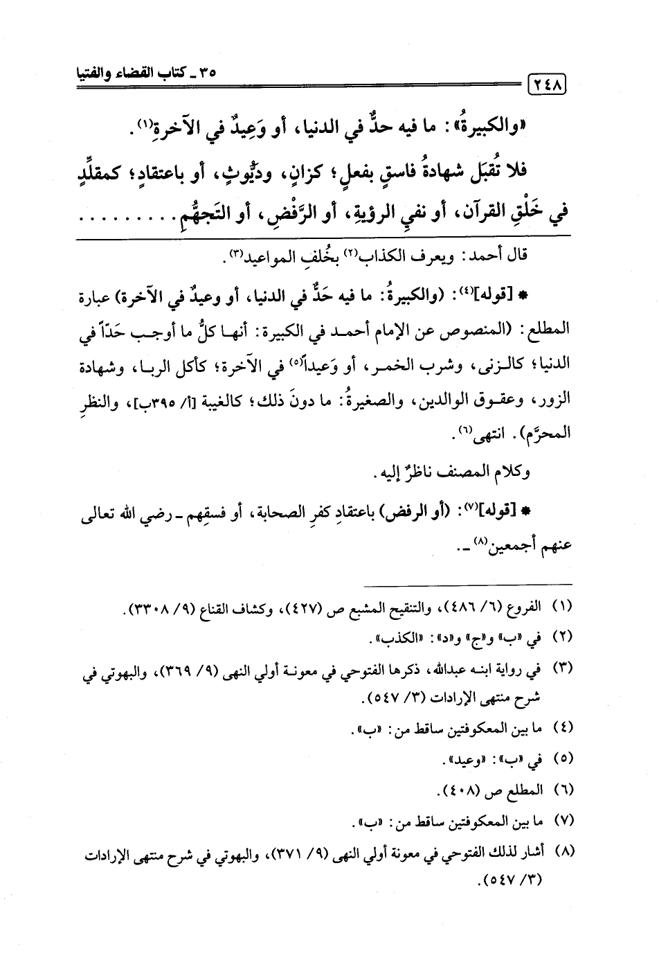 (¬8) أشار لذلك الفتوحي في معونة أولي النهى (9/ 371)، والبهوتي في شرح منتهى الإرادات (3/ 547).