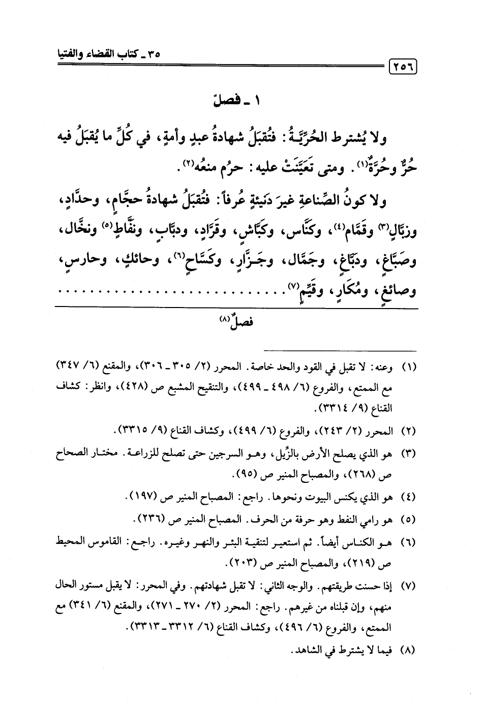 ولا كونُ الصِّناعةِ غيرَ دنَيئةٍ عُرفًا: فتُقبَلُ شهادةُ حجَّامٍ، وحدَّادٍ، وزبَّالٍ (¬3) وقَمَّام (¬4)، وكَنَّاس، وكَبَّاشٍ، وقَرَّادٍ، ودبَّابٍ، ونَفَّاطٍ (¬5) ونخَّال، وصَبَّاغٍ، ودَبَّاغٍ، وجَمَّال، وجَزَّارٍ، وكَسَّاحٍ (¬6)، وحائكٍ، وحارسٍ، وصائغٍ، ومُكَارٍ، وقَيِّمٍ (¬7). . . . . .