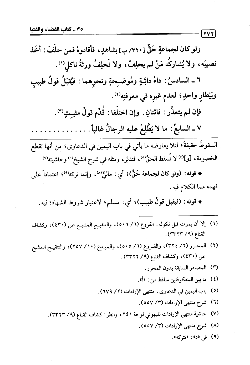 (¬7) حاشية منتهى الإرادات للبهوتي لوحة 241، وانظر: كشاف القناع (9/ 3323).