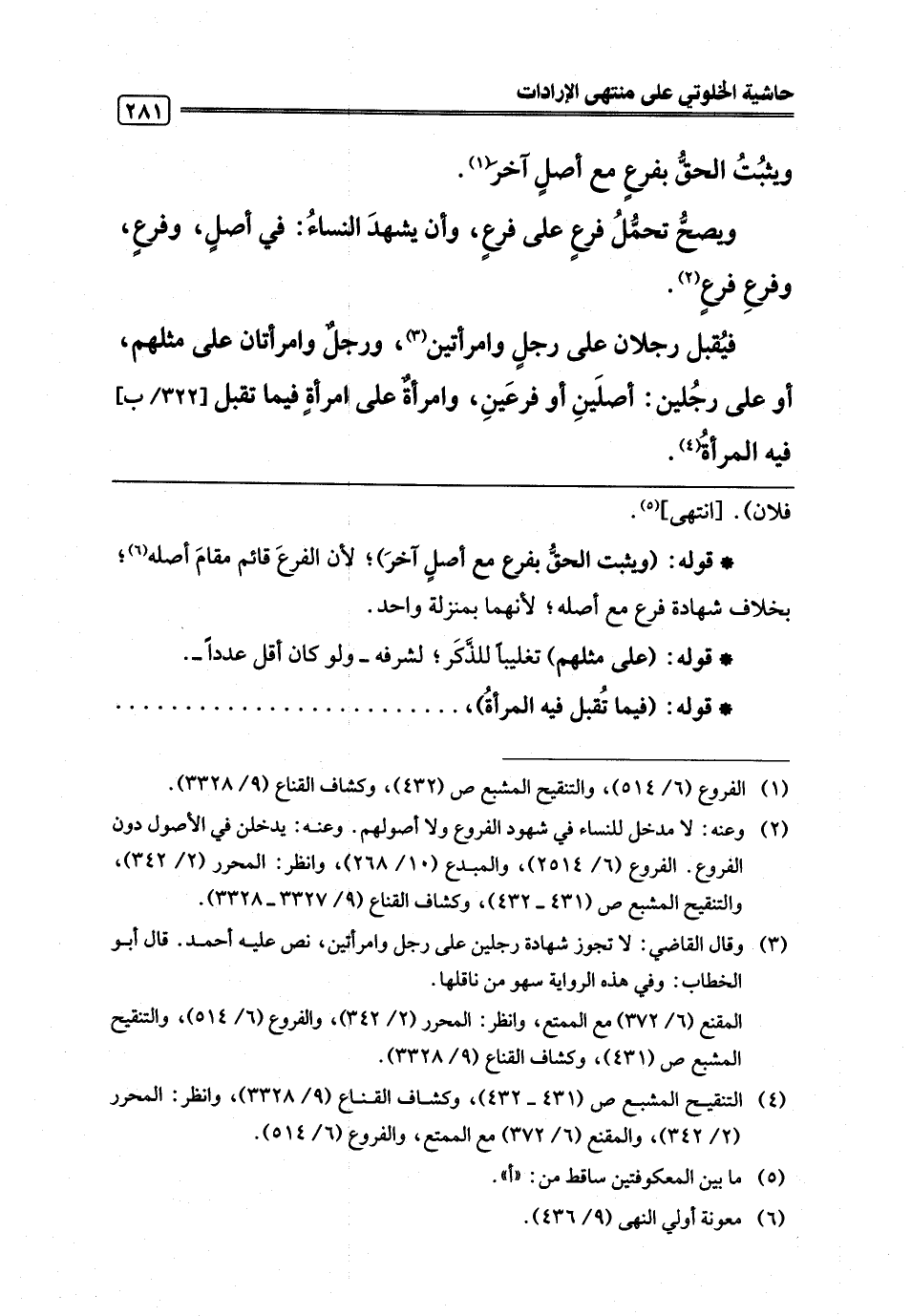 (¬4) التنقيح المشبع ص (431 - 432)، وكشاف القناع (9/ 3328)، وانظر: المحرر (2/ 342)، والمقنع (6/ 372) مع الممتع، والفروع (6/ 514).