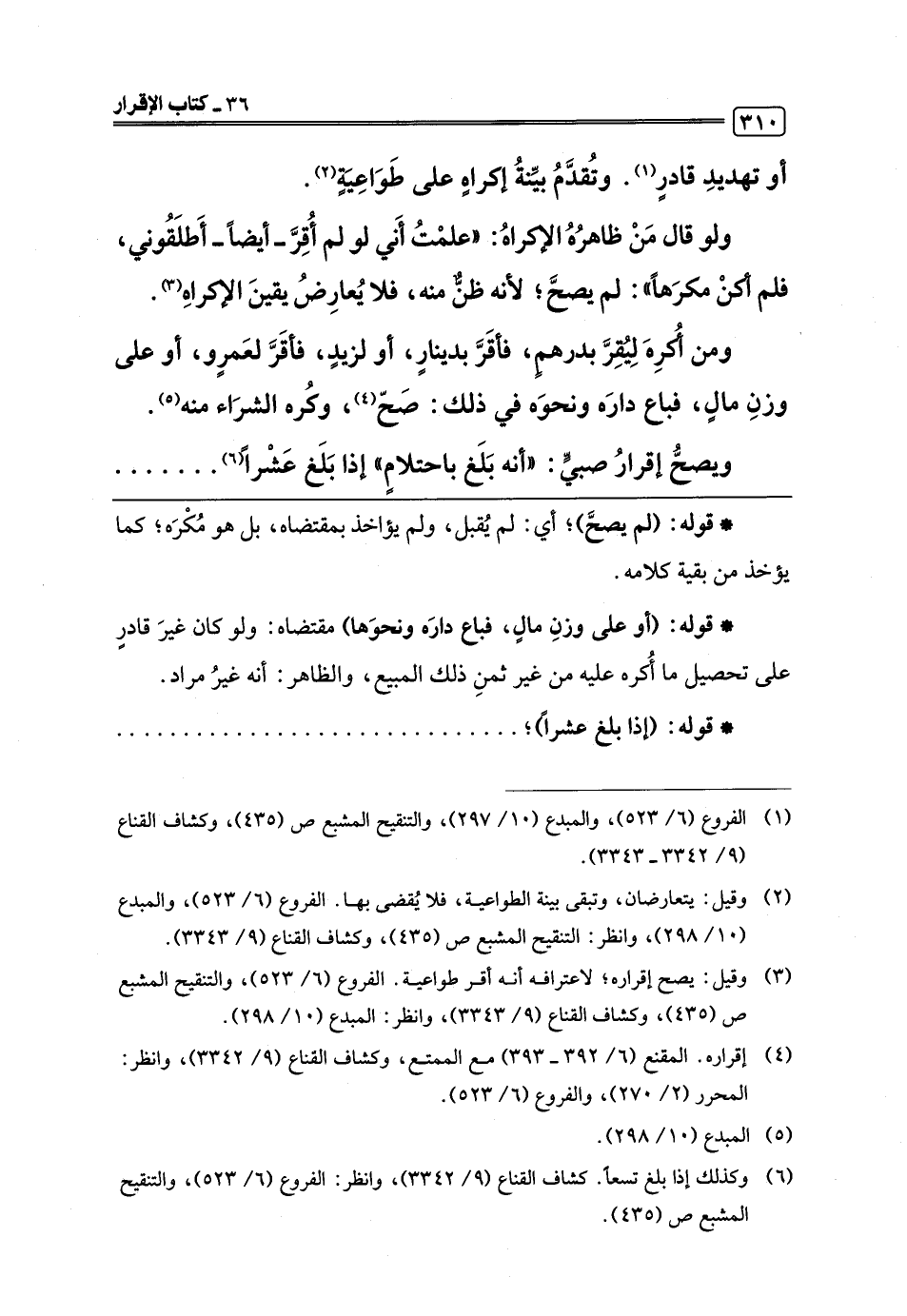 (¬3) وقيل: يصح إقراره؛ لاعترافه أنه أقر طواعية. الفروع (6/ 523)، والتنقيح المشبع ص (435)، وكشاف القناع (9/ 3343)، وانظر: المبدع (10/ 298).