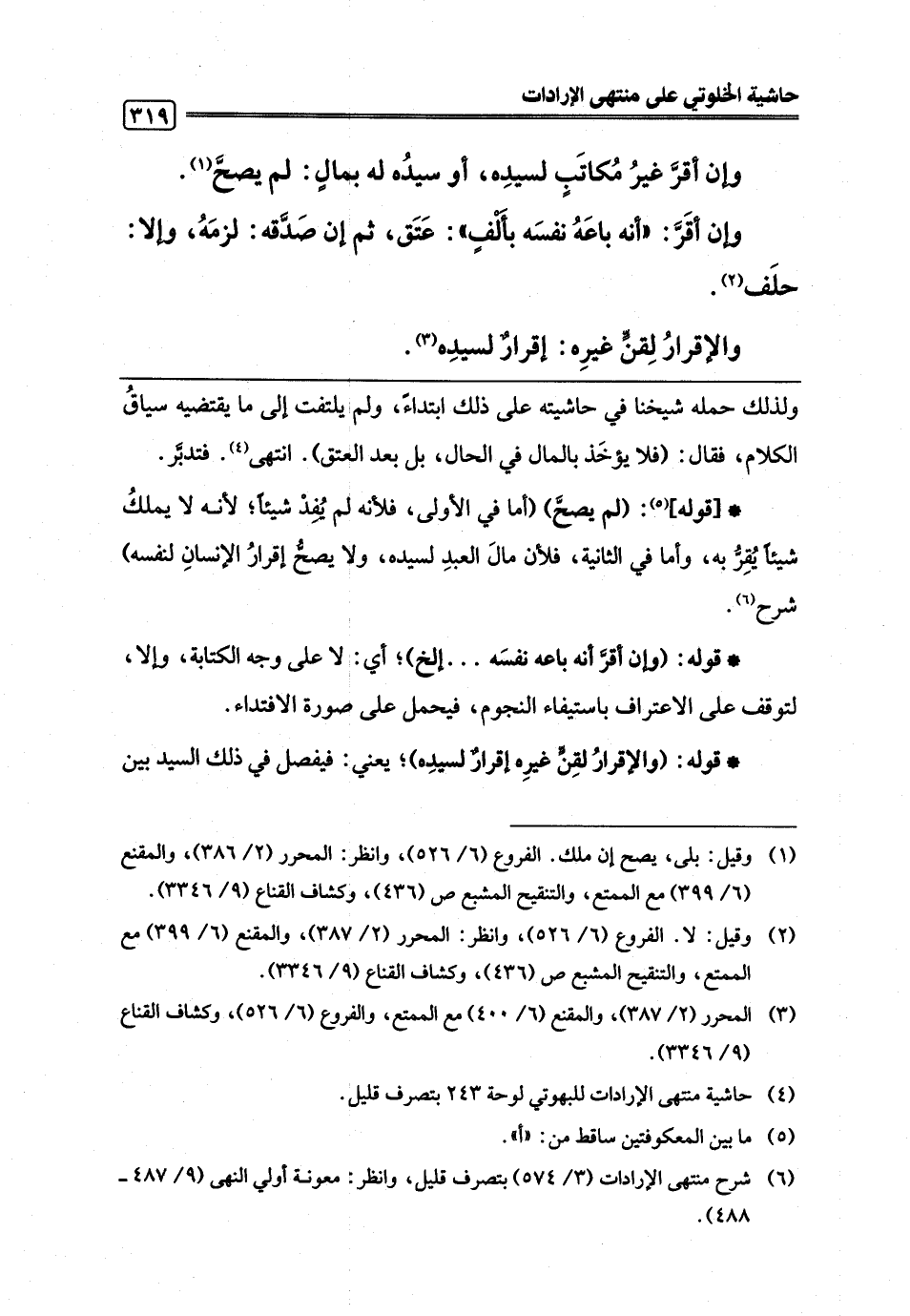 (¬4) حاشية منتهى الإرادات للبهوتي لوحة 243 بتصرف قليل.