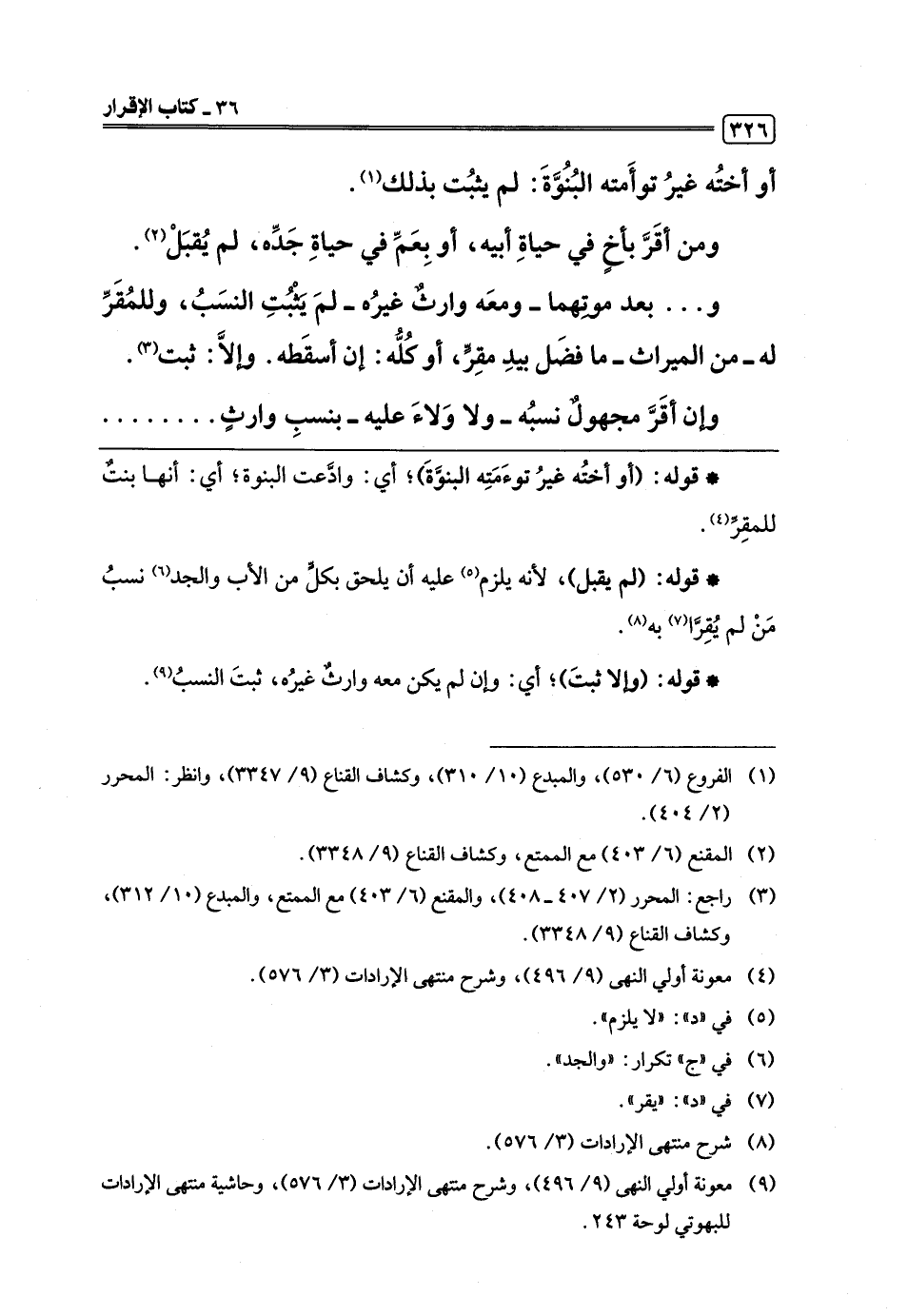 (¬9) معونة أولي النهى (9/ 496)، وشرح منتهى الإرادات (3/ 576)، وحاشية منتهى الإرادات للبهوتي لوحة 243.