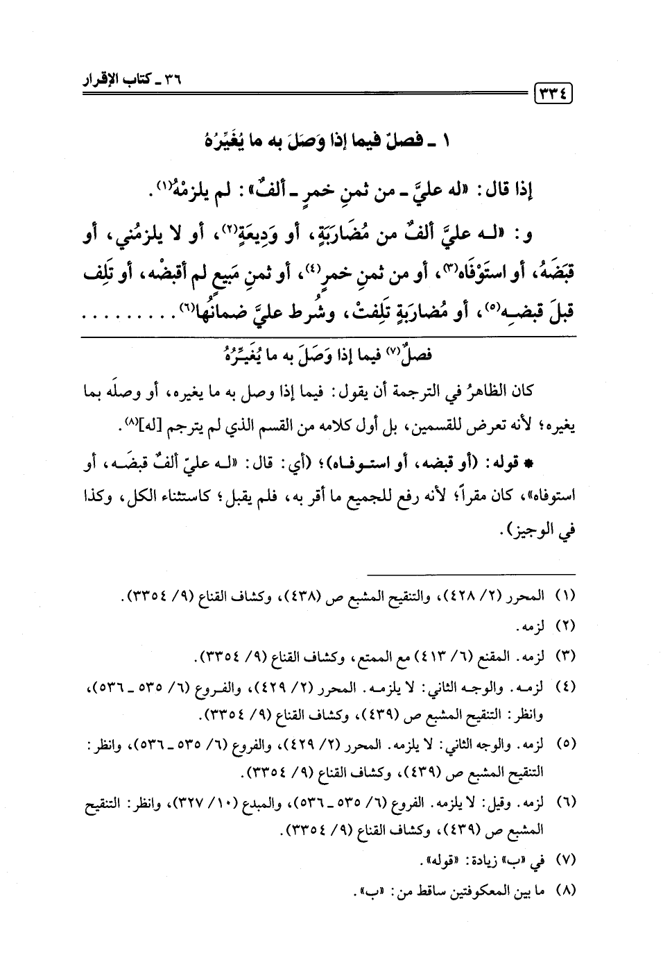 (¬5) لزمه. والوجه الثاني: لا يلزمه. المحرر (2/ 429)، والفروع (6/ 535 - 536)، وانظر: التنقيح المشبع ص (439)، وكشاف القناع (9/ 3354).