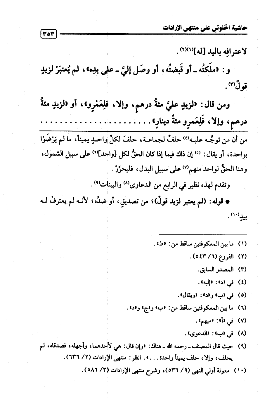 (¬10) معونة أولي النهى (9/ 536)، وشرح منتهى الإرادات (3/ 586).