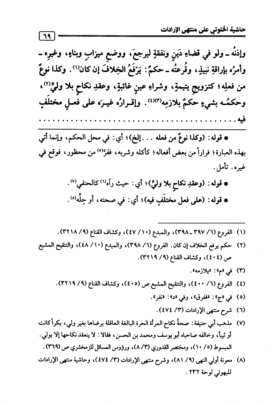 (¬8) معونة أولي النهى (9/ 81)، وشرح منتهى الإرادات (3/ 474)، وحاشية منتهى الإرادات للبهوتي لوحة 232.